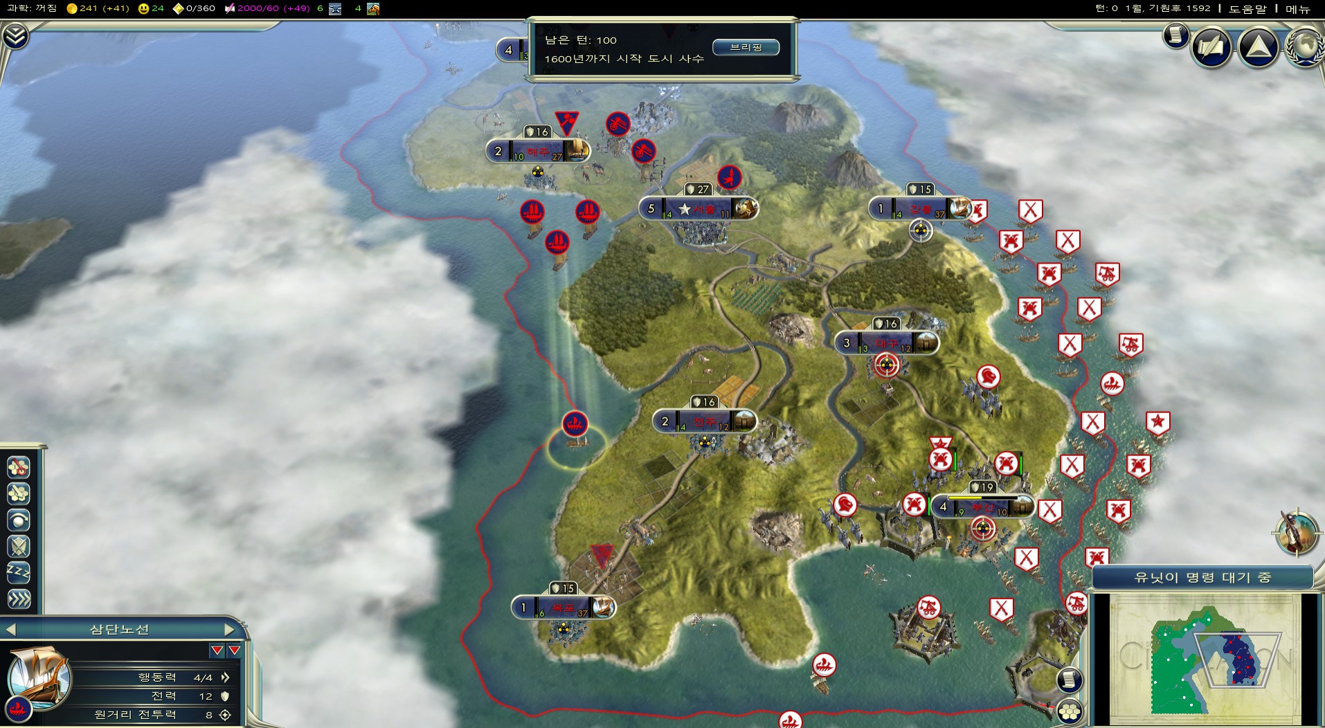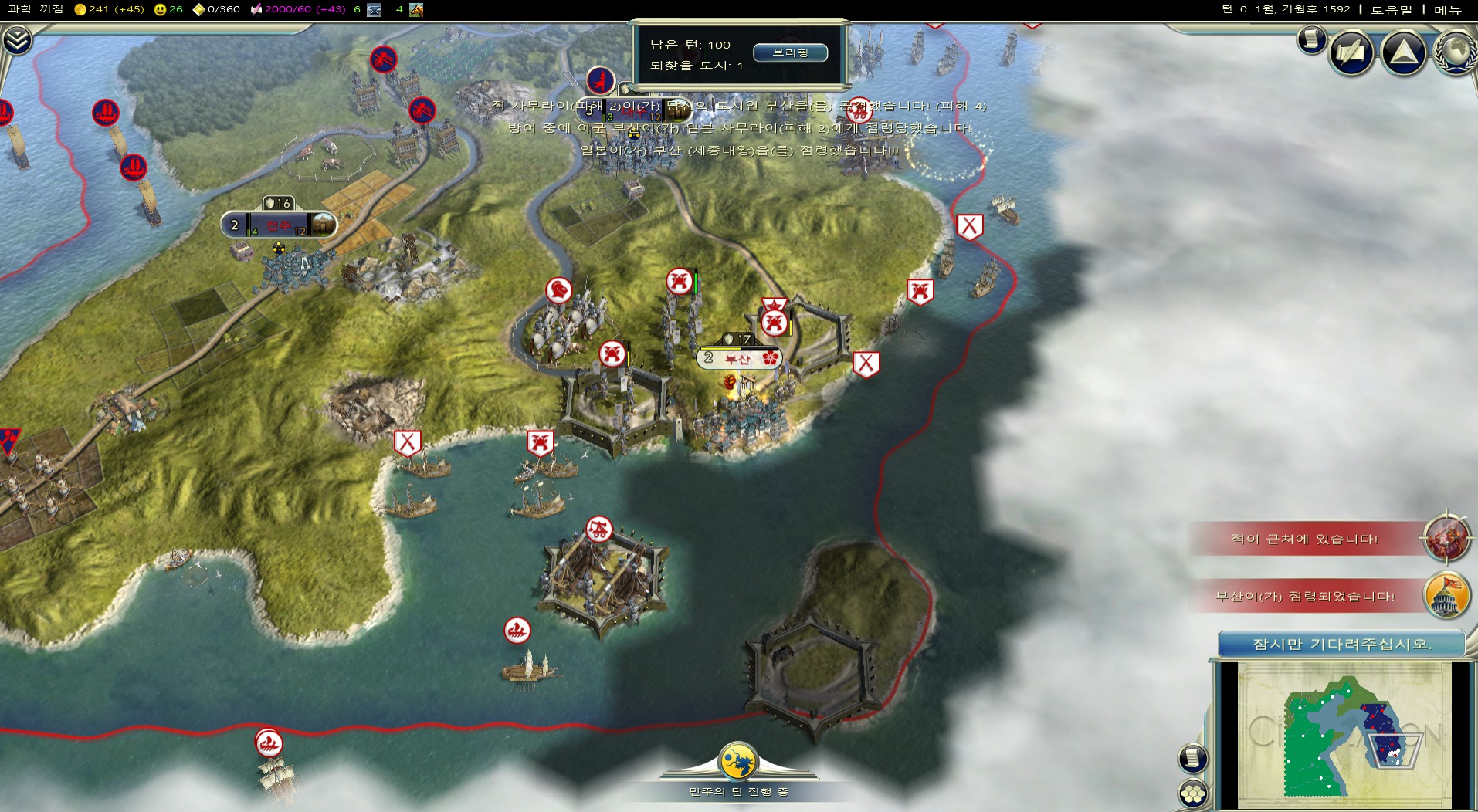 공략 찾아보다가 어차피 1~2턴만에 먹힐 부산이니까