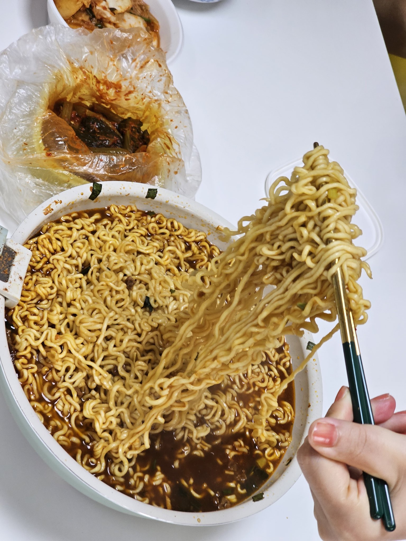 라면 안 좋아해서 한 젓가락만 드셨습니다.